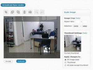 Puteti redimensiona orice imagine din Media Library. Pentru un rezultat bun, aceasta operatiune ar trebui facuta inainte de celelalte(decupare, rotire, etc).